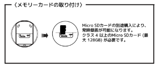 なお、Micro SDカードの別途購入により、常時録画が可能になります。